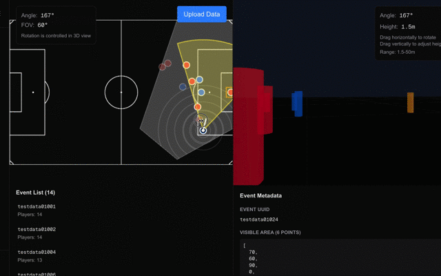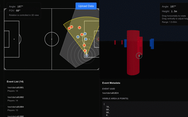 – ピッチエリアのアクターの視界(扇形エリア)内にいるプレイヤー(座標)を3Dで表示します。